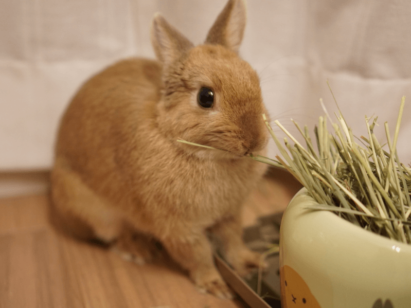 今までのペレットと牧草の与えるタイミングを変えることで、牧草を再度食べるようになるかもしれません。