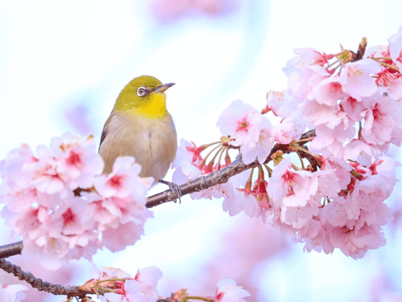 木の枝と枝の間をちいさくぴょこぴょこと跳ねるように飛びまわっている 鳥 がいたら、それは「メジロ」かもしれません。