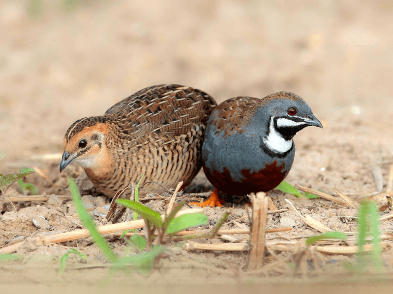 ヒメウズラは飛ぶことが得意な鳥ではないため、地上で昆虫や穀物などを食べて生活します。