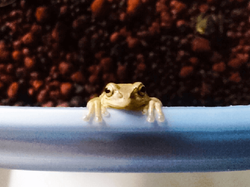 コオロギを食べる全てのカエルに言えることなのですが、生きたコオロギを飼育容器内に放しっぱなしにしておくと顎でカエルを傷つけてしまうこともありますので、そうした場合は取り除くようにしてください。