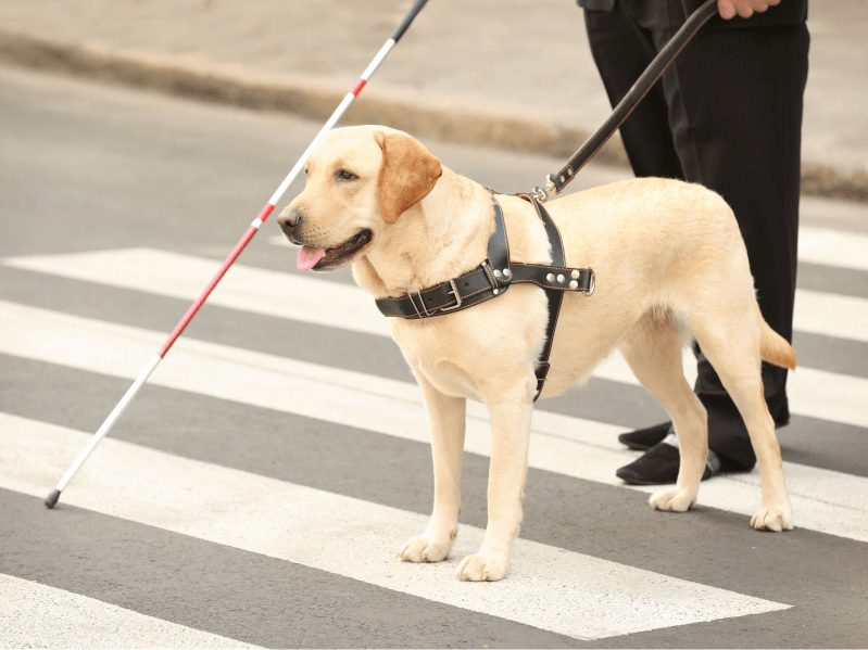 盲導犬は、基本はユーザーの左端を歩くように訓練されています。