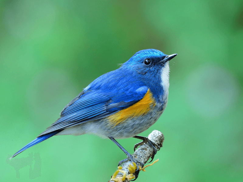 オスは青とオレンジの2色ですが、メスは地味な羽色をしています。