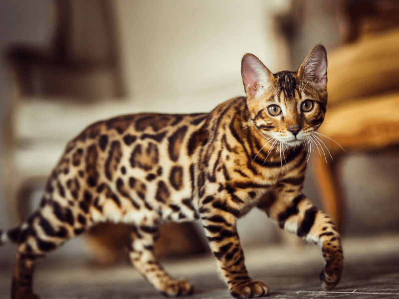 アジアン・レパードキャットの血をひき、ヒョウ柄の模様を持つベンガルは力強い野性味あふれる猫に見えます。