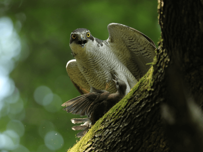 野生のオオタカは、鳥やほ乳類を捕まえて食べています。