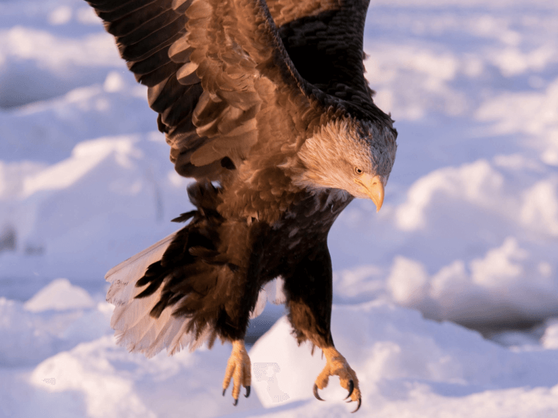 時期によっては、雪の上に立つオジロワシを見ることができるかもしれません。