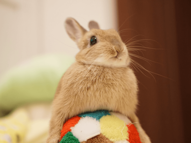 うさぎの体の大きさに似たぬいぐるみや、太い縁のあるペット用クッションなどがあると、オスうさぎはマウンティング行動を始めてしまいます。