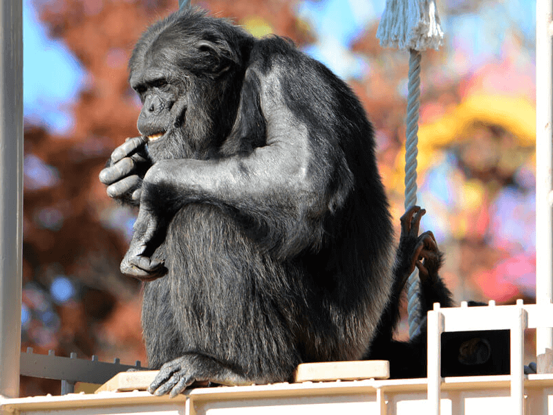 非常に知能が高く、簡単な言語やじゃんけんなどのルールも理解できるチンパンジー。